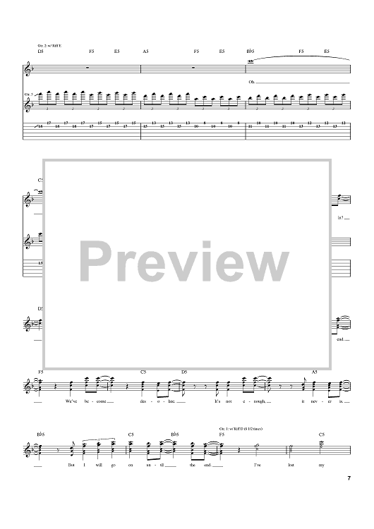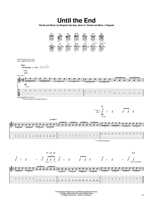 Digital Sheet Music for Until The End by Breaking Benjamin, Benjamin Burnley, Aaron Fink, Mark Klepaski scored for Guitar Tab; id:395017