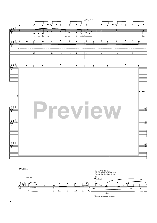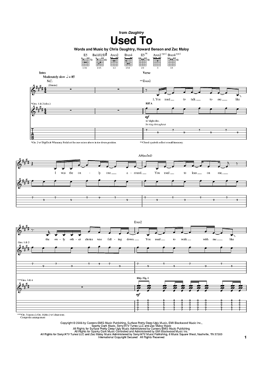Digital Sheet Music for Used To by Chris Daughtry, Daughtry, Howard Benson, Zac Maloy scored for Guitar Tab; id:401056