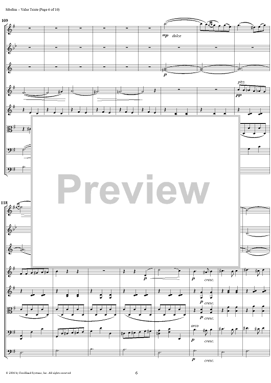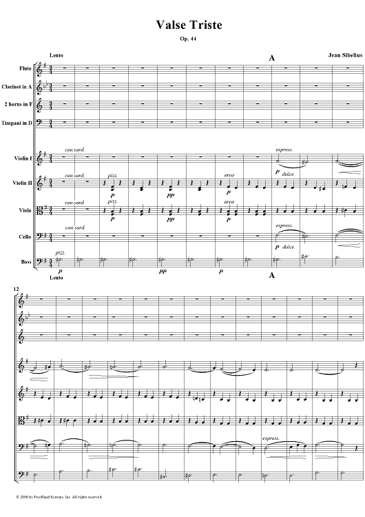 Digital Sheet Music for Valse Triste by Jean Sibelius scored for Orchestra; id:118383