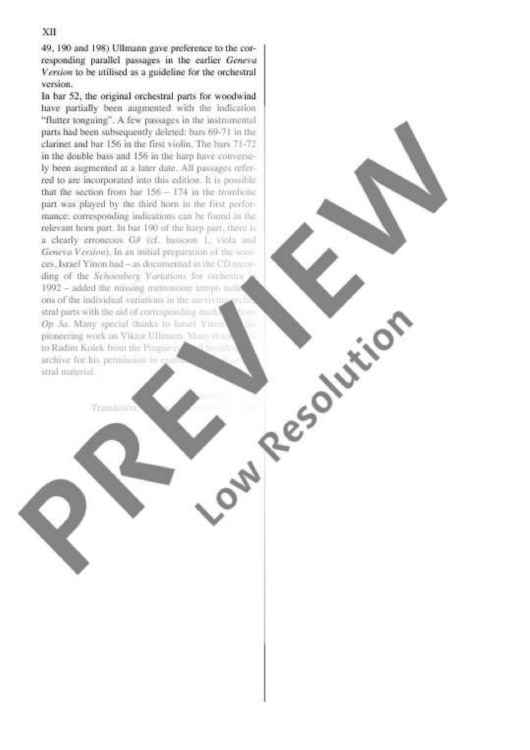 This edition of variations is the only completely extant orchestral work by Viktor Ullmann. His compositional reflection on one of the best-known miniatures by his teacher Arnold Schoenberg covered a period of almost 15 years. Following the version for piano (ED 8433) and for string quartet (ED 9822), the orchestral version with detailed annotations is now available as a study score.