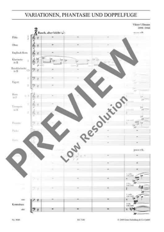 "Variations, Fantasy and Double Fugue - Full Score" Sheet Music by Viktor Ullmann