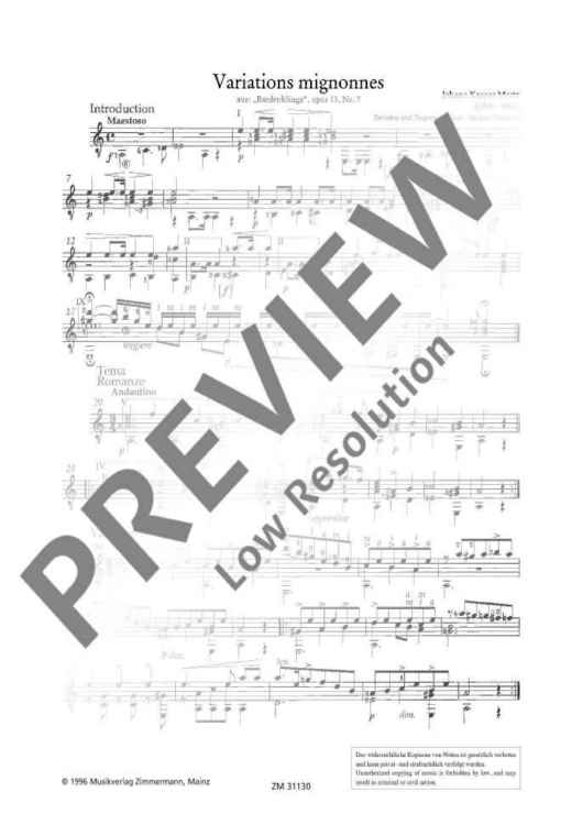 Johann Kaspar Mertz would have turned 190 in 1996. The „Variations mignonnes“ and the „Capriccio“ are part of a collection of 15 volumes which Mertz compiled and called "Bardenklänge". They contain an extensive collection of romantic character pieces. The "Nocturne" has been taken from another source. The compositions presented in this book do not make great technical demands, and they serve as an introduction into the composer's oeuvre. At the same time, they reflect the guitar repertoire of his time.