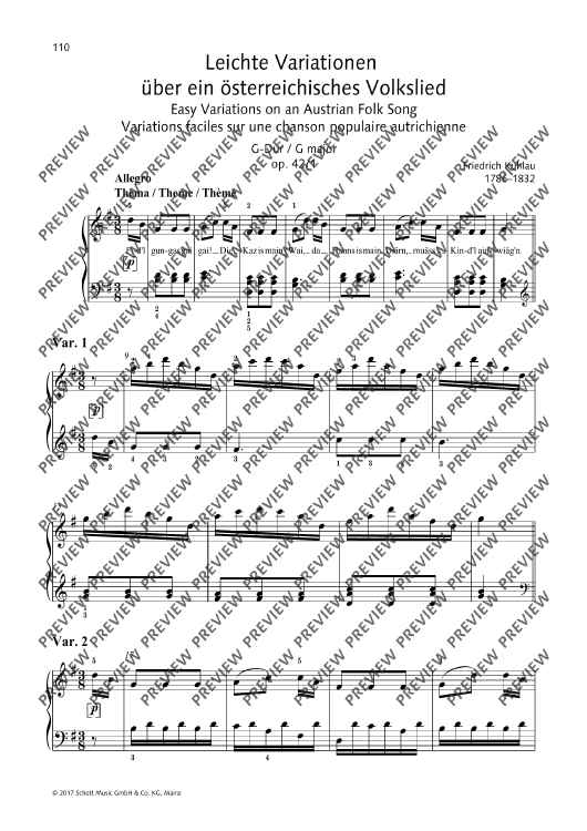 Digital Sheet Music for Variations on an Austrian Folk Song by Friedrich Kuhlau scored for Piano; id:478314