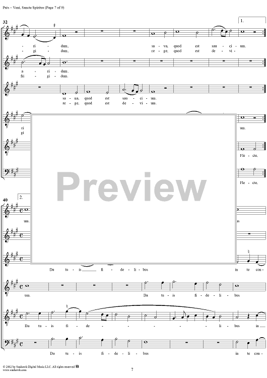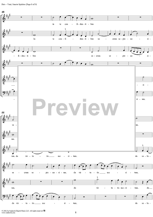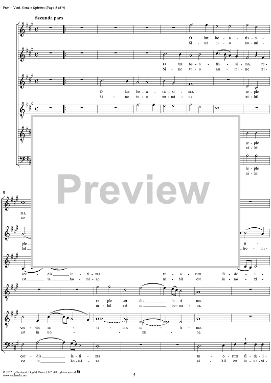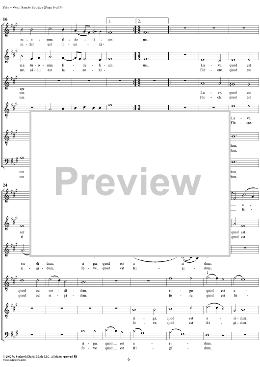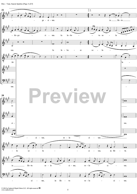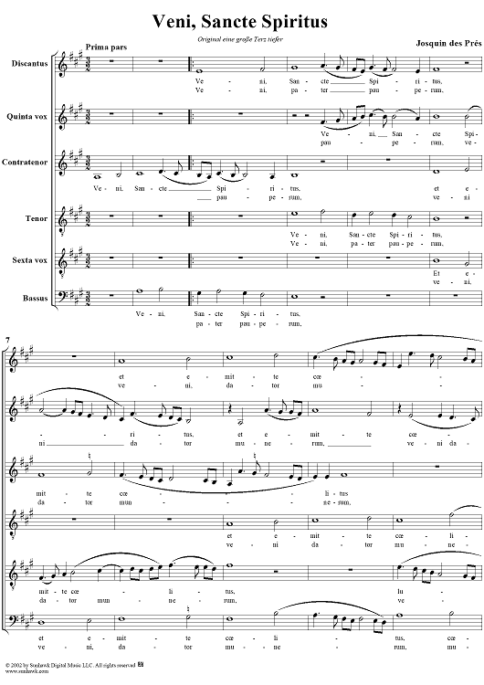 Digital Sheet Music for Veni, Sancte Spiritus by Josquin Des Pres scored for Mixed Chorus; id:271252