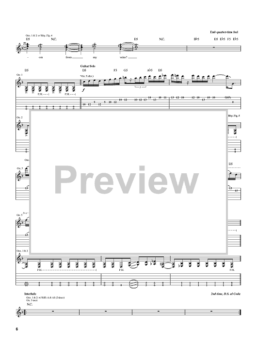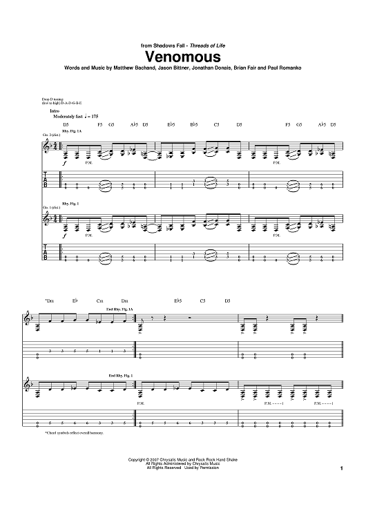 Digital Sheet Music for Venomous by Matthew Bachand, Jason Bittner, Jonathan Donais, Brian Fair, Paul Romanko, Shadows Fall scored for Guitar Tab; id:397411