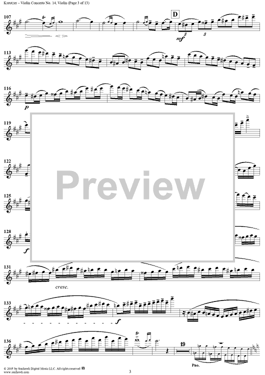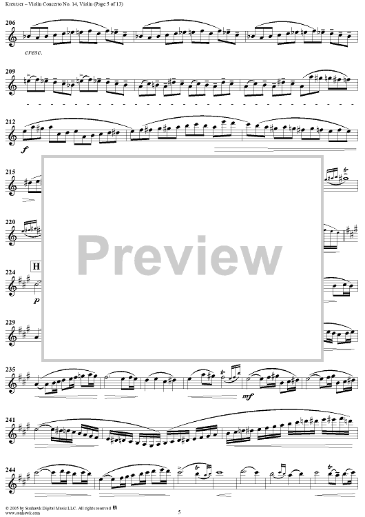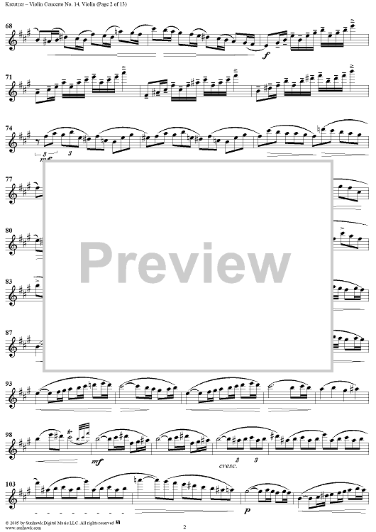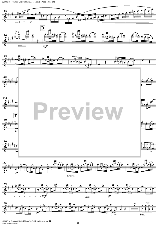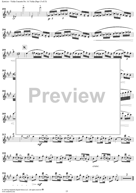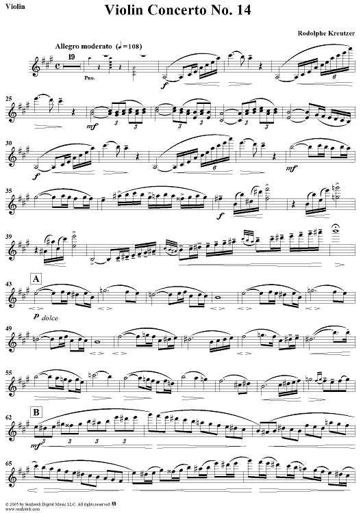 Digital Sheet Music for Violin Concerto No. 14 - Violin by Rodolphe Kreutzer scored for Violin/Piano; id:309782