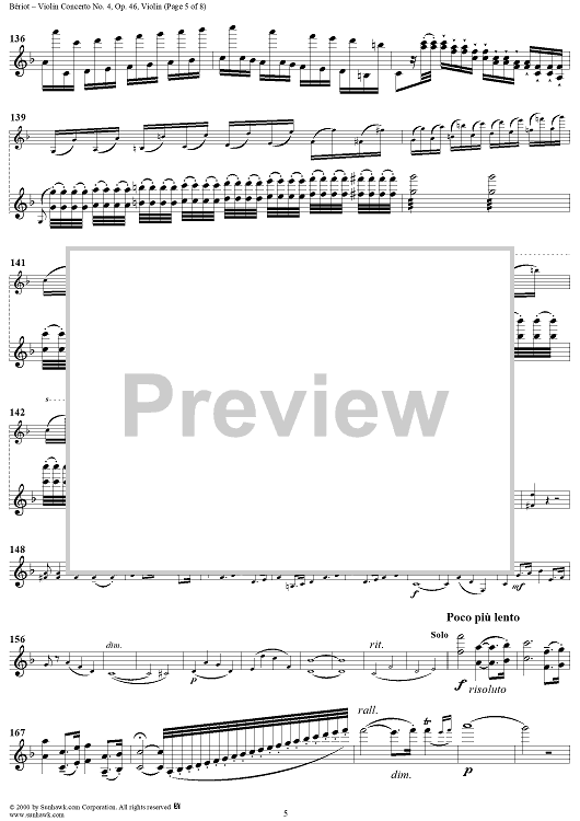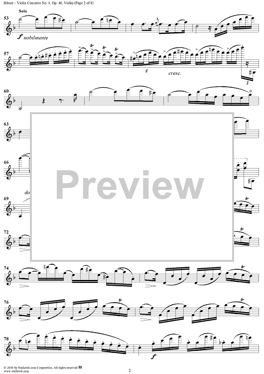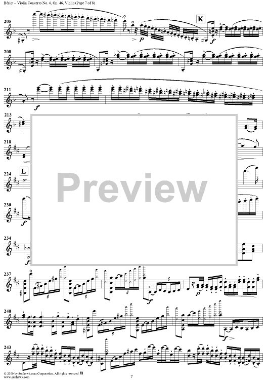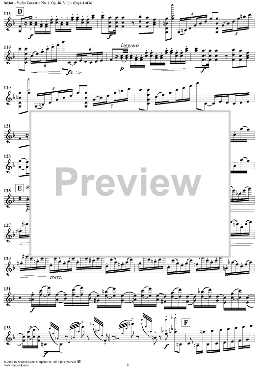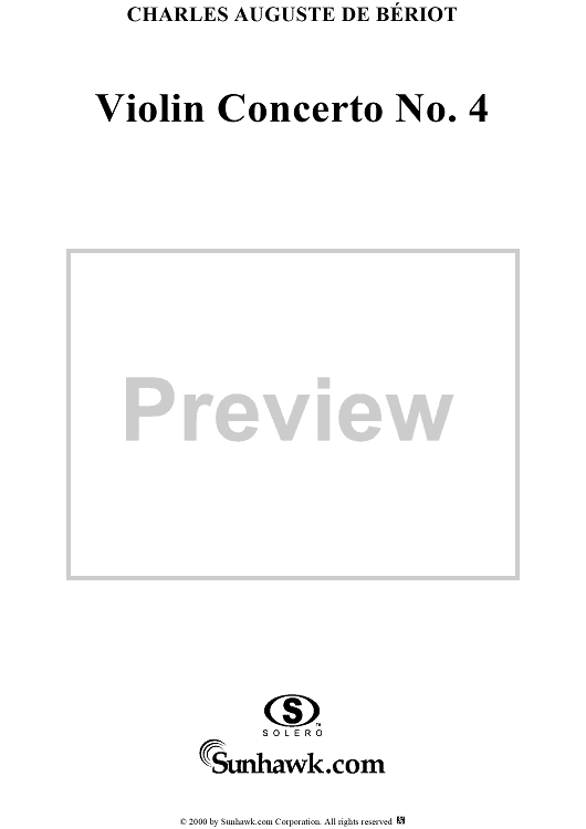 Digital Sheet Music for Violin Concerto No. 4 - Violin by Charles de Bériot scored for Violin/Piano; id:241996