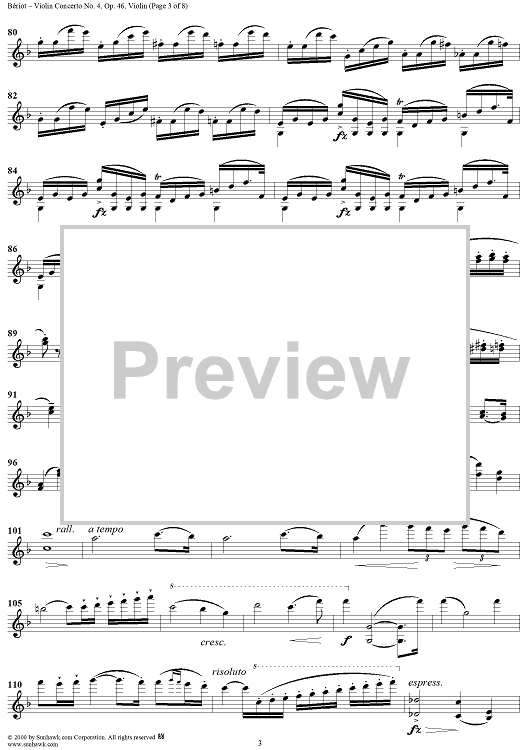"Violin Concerto No. 4 - Violin" Sheet Music by Charles-Auguste de Bériot