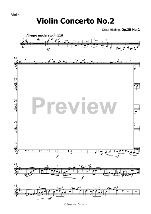 "Violin Concerto No.2 in b minor, Op.35" Sheet Music by Oskar Rieding