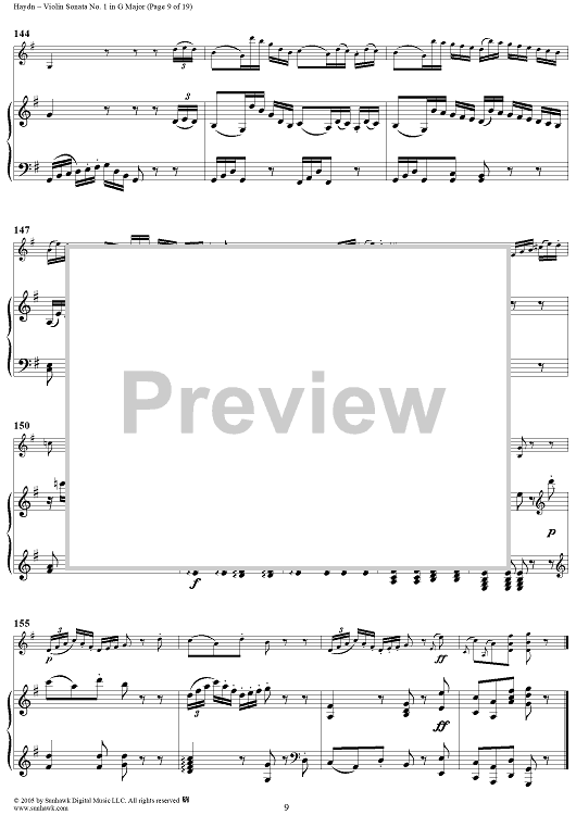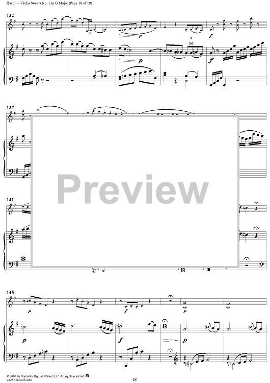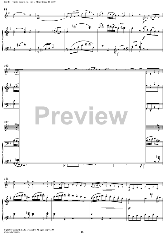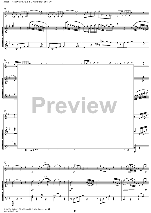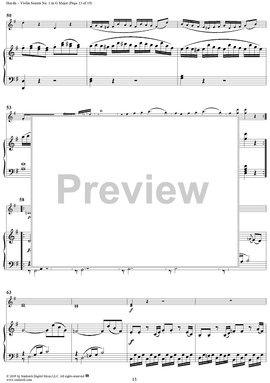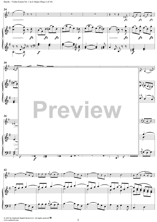 Digital Sheet Music for Violin Sonata No. 1 - Piano Score by Franz Joseph Haydn scored for Violin/Piano; id:310602