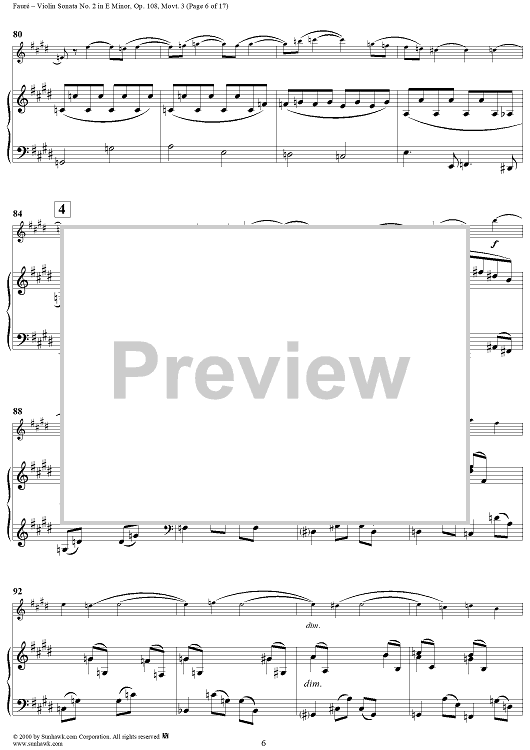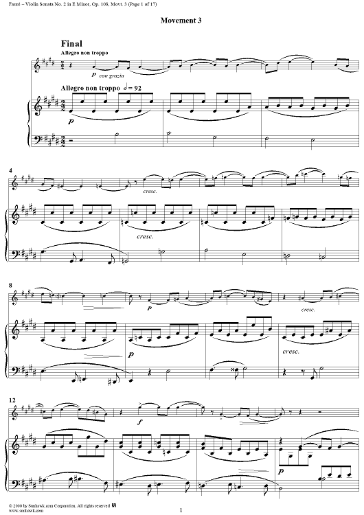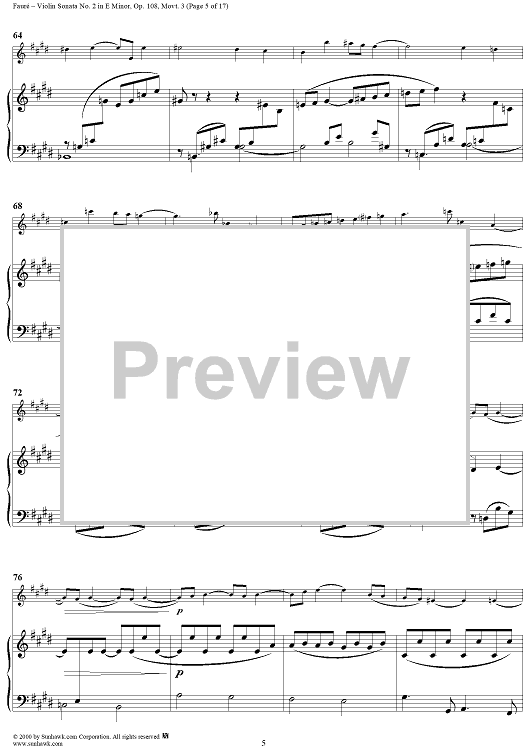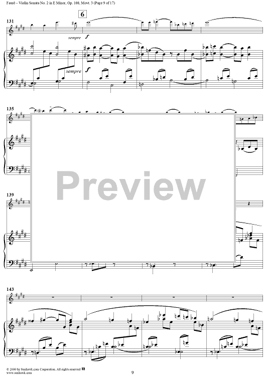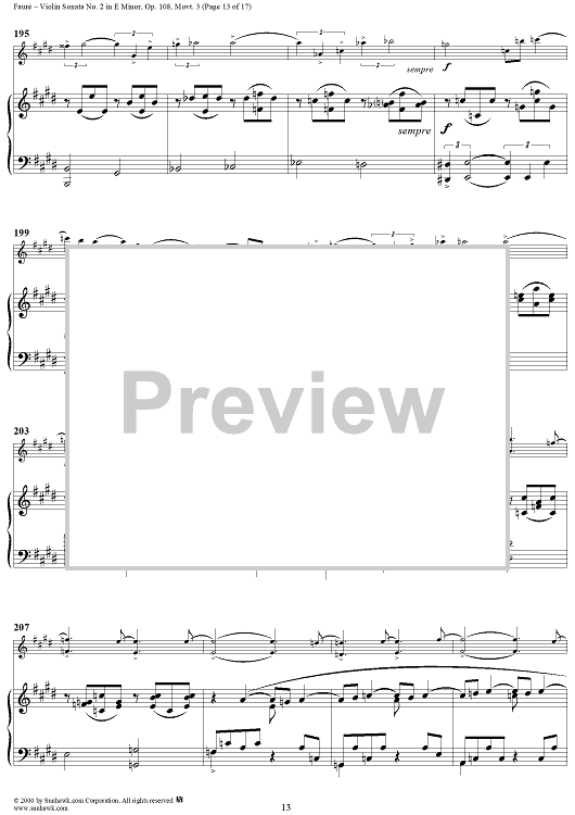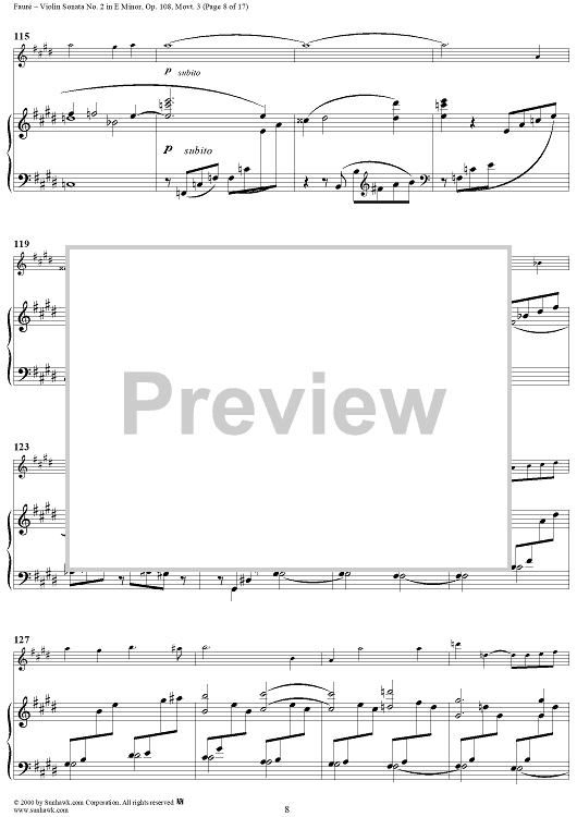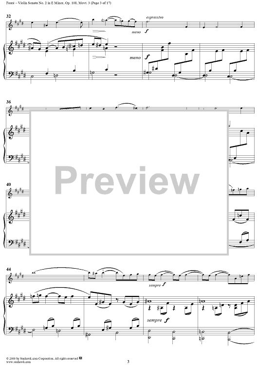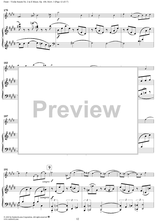 Digital Sheet Music for Violin Sonata No. 2, Movement 3 - Piano Score by Gabriel Fauré scored for Violin/Piano; id:269760