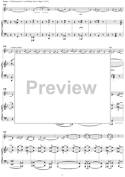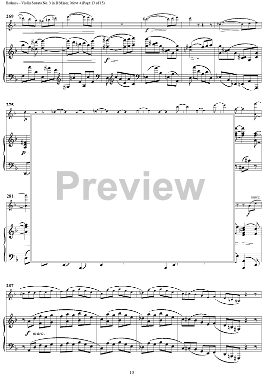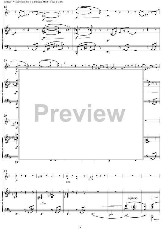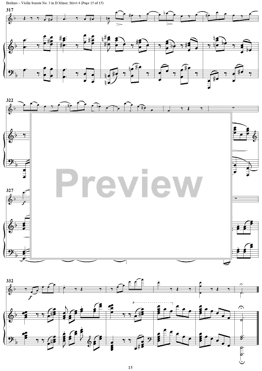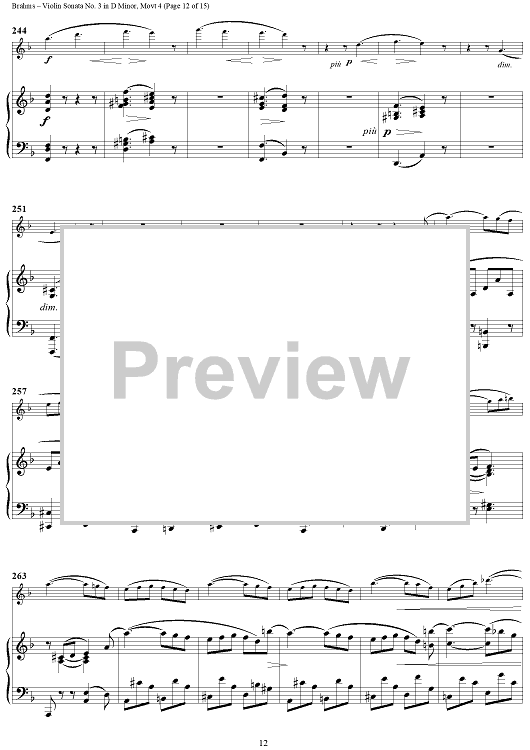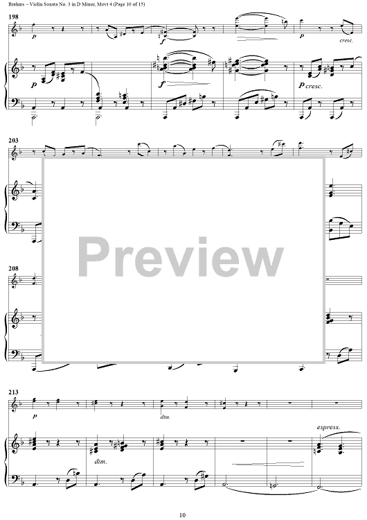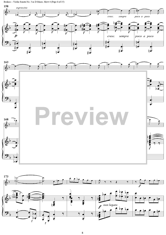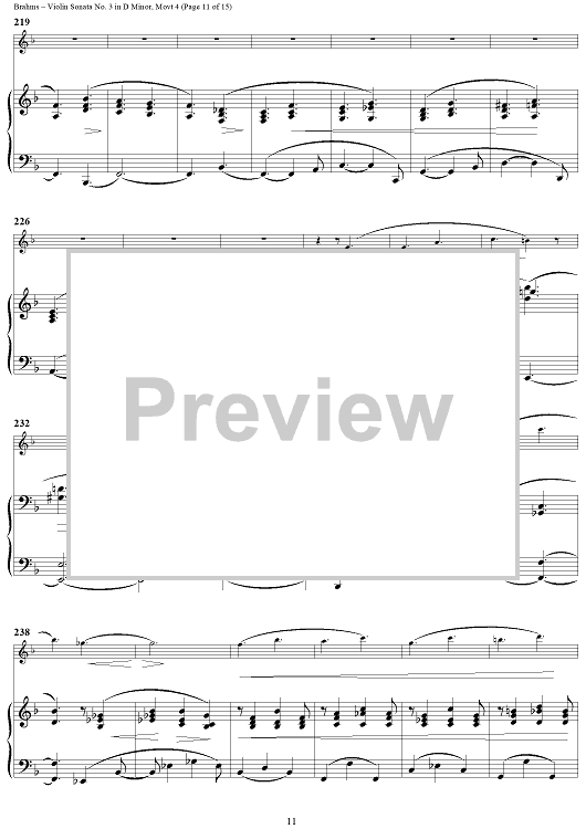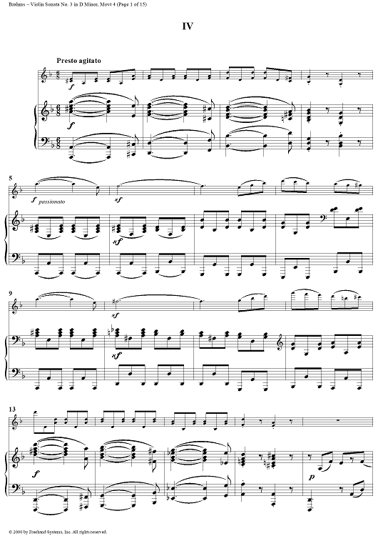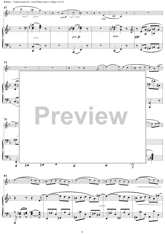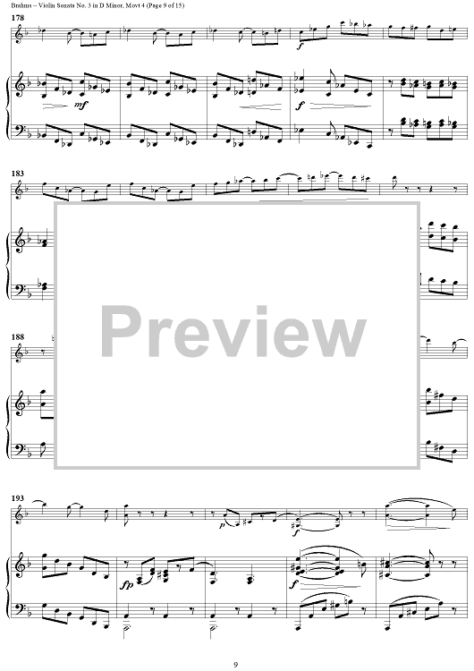 Digital Sheet Music for Violin Sonata No. 3, Movement 4 - Piano Score by Johannes Brahms scored for Violin/Piano; id:118454