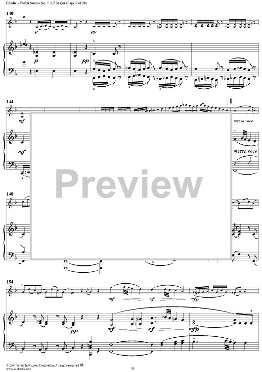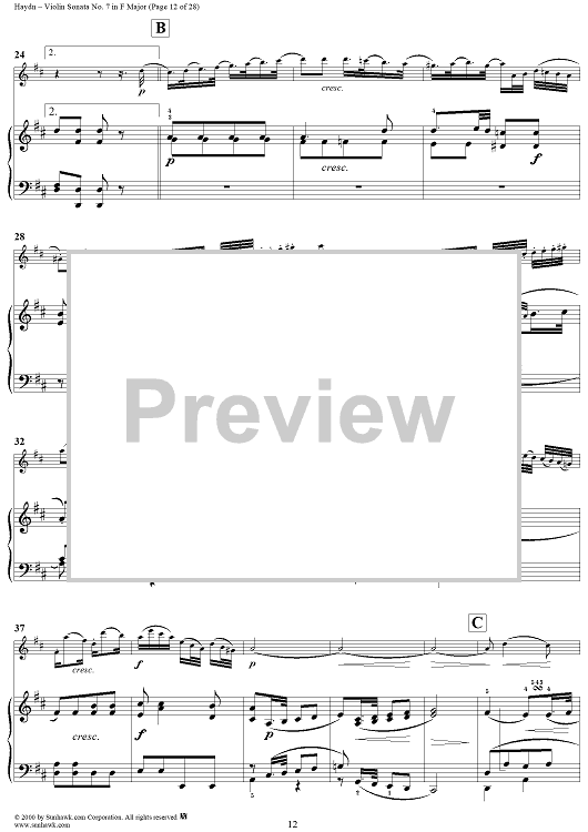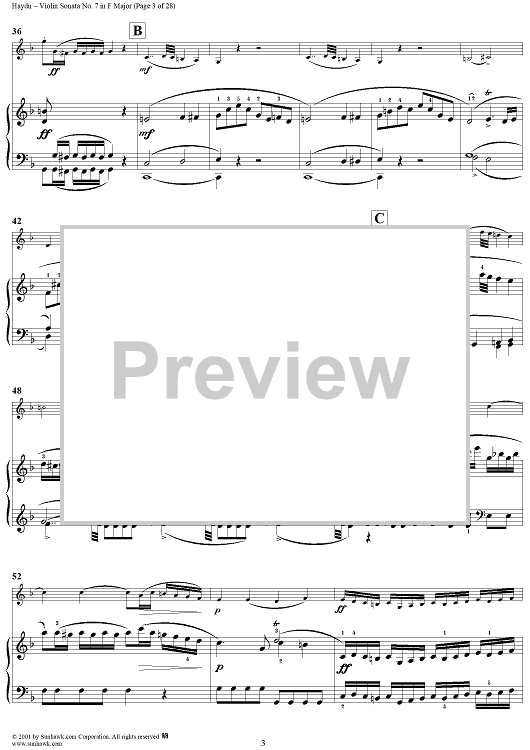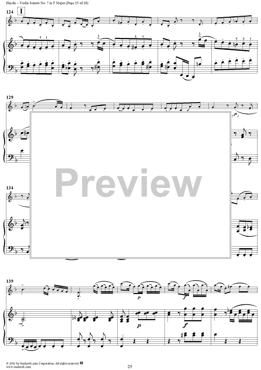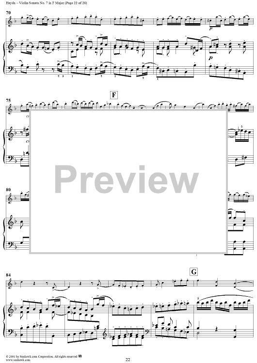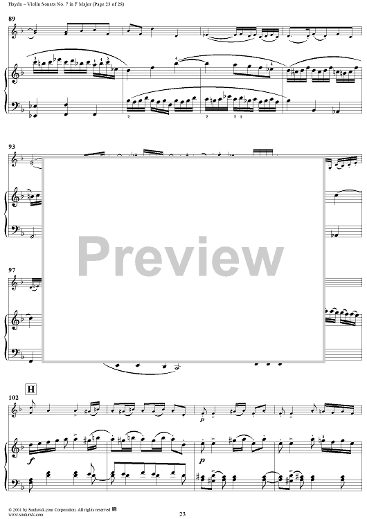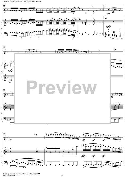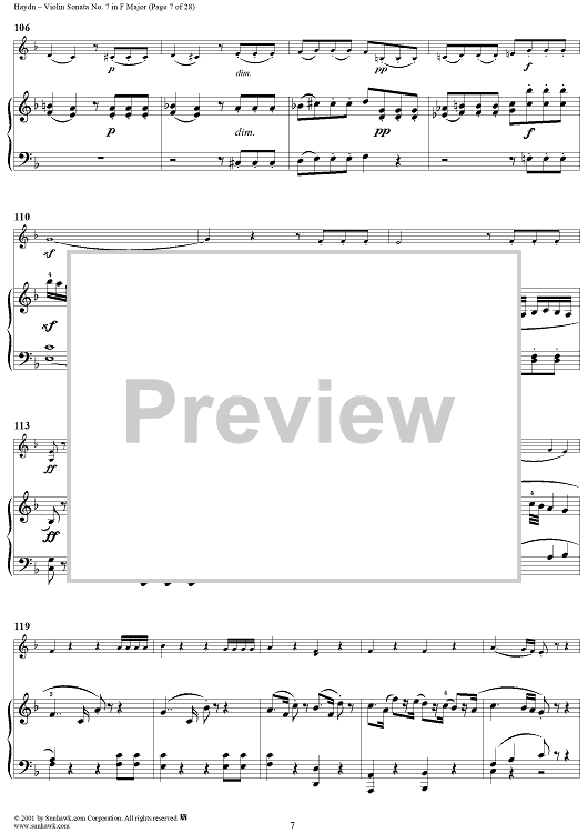 Digital Sheet Music for Violin Sonata No. 7 - Piano Score by Franz Joseph Haydn scored for Violin/Piano; id:265679