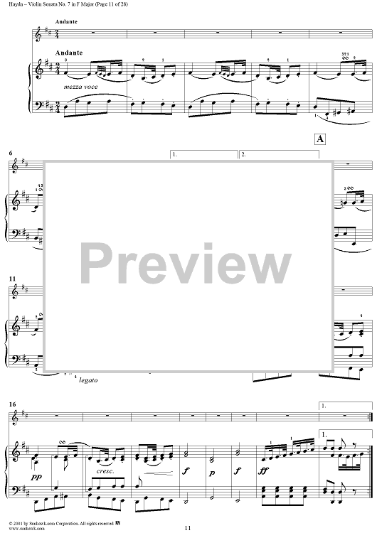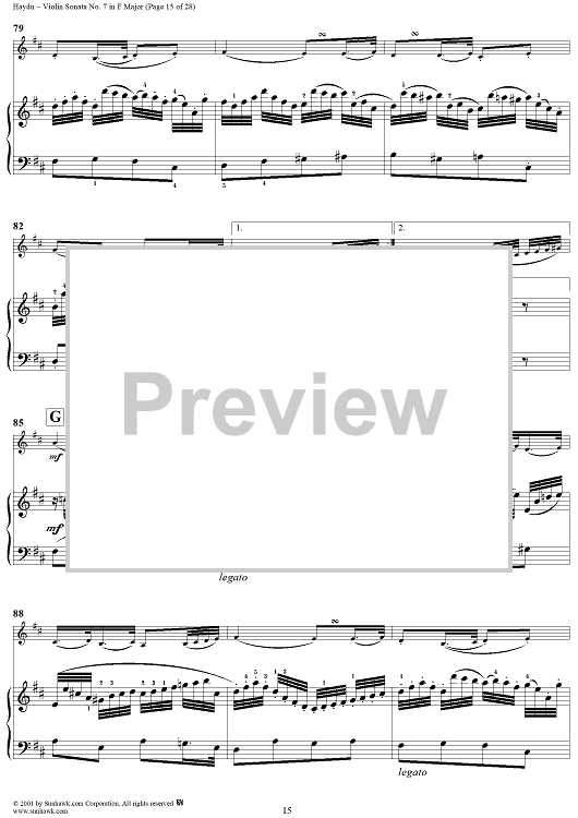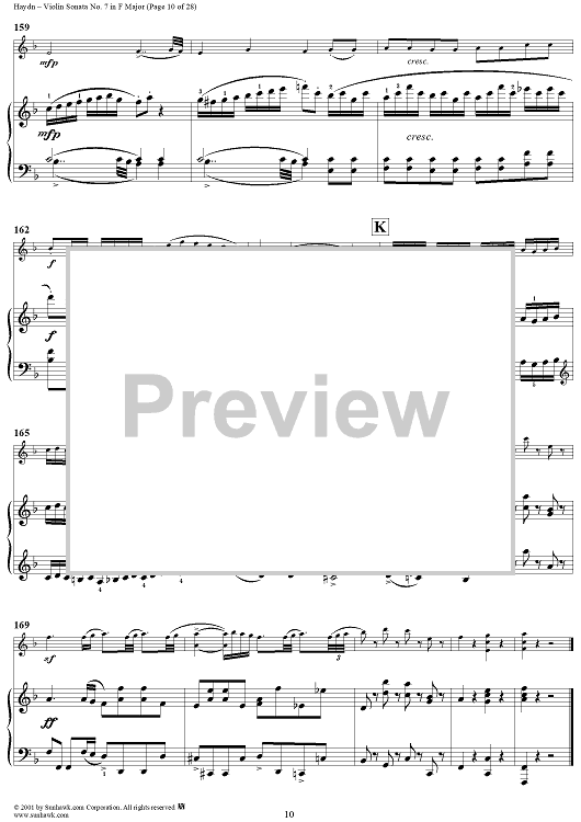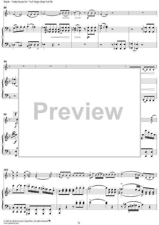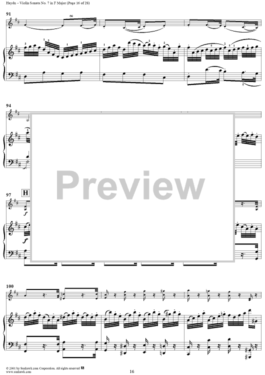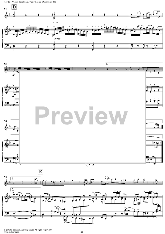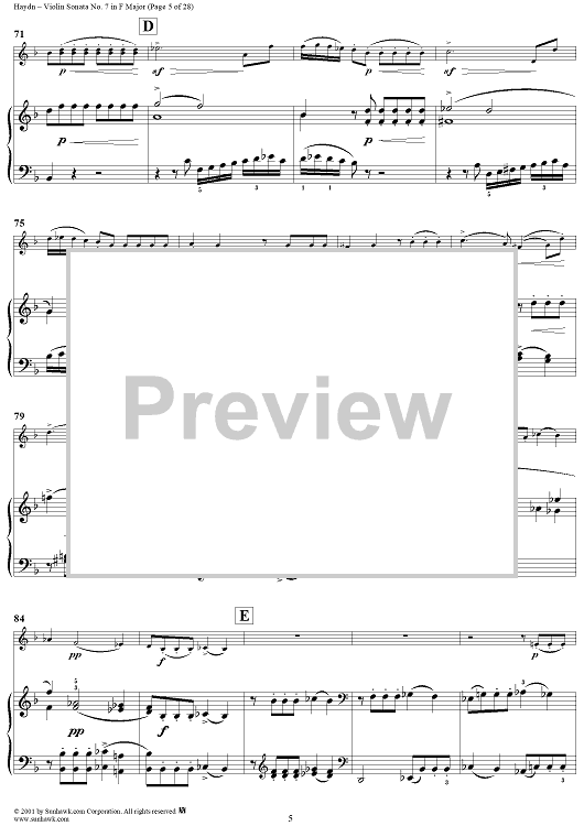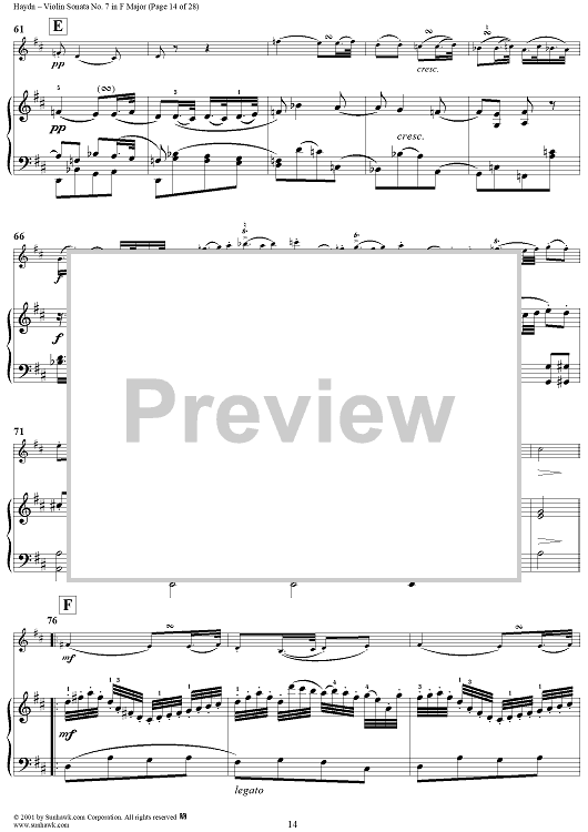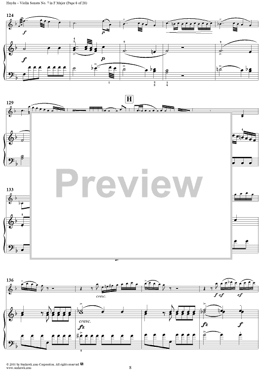 Digital Sheet Music for Violin Sonata No. 7 - Piano Score by Franz Joseph Haydn scored for Violin/Piano; id:265679