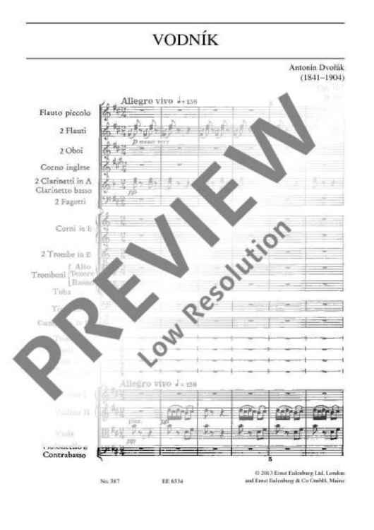 "Vodník - The Watersprite - Full Score" Sheet Music by Antonín Dvorák