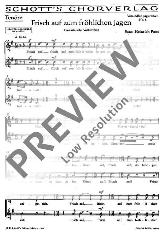 "Vom edlen Jägerleben - Tenor I / Ii" Sheet Music by Heinrich Poos