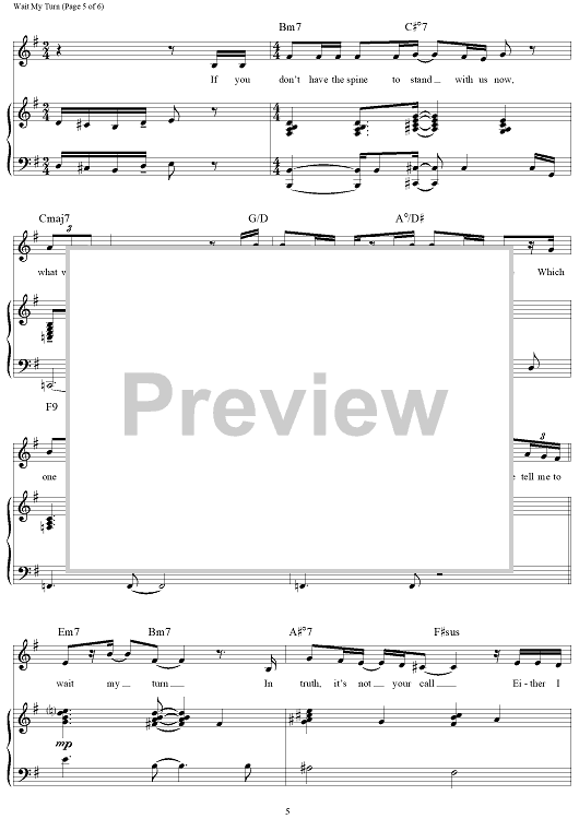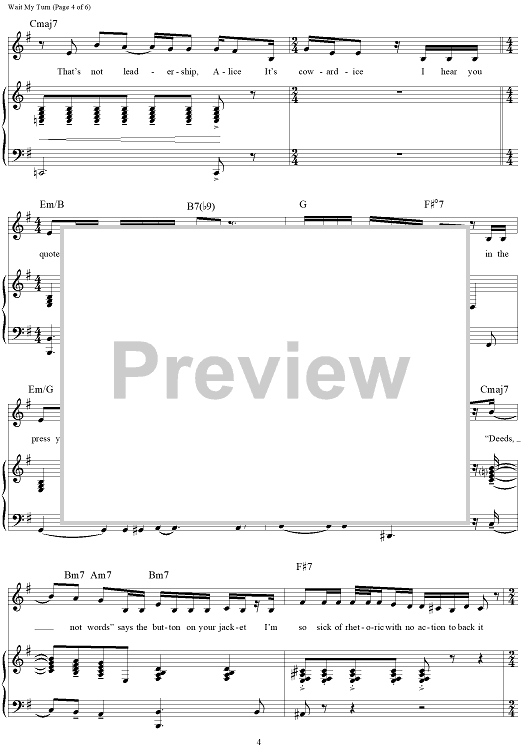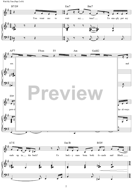 Digital Sheet Music for Wait My Turn (from Suffs) by Shaina Taub scored for Piano/Vocal/Chords; id:503682