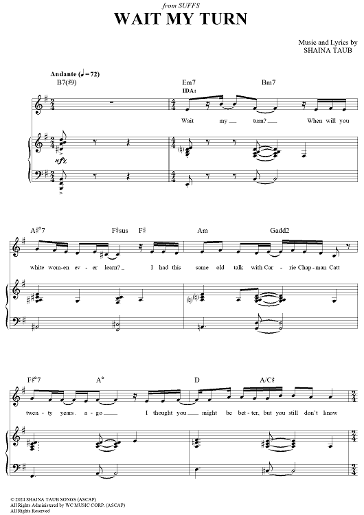 "Wait My Turn (from Suffs)" Sheet Music by Shaina Taub