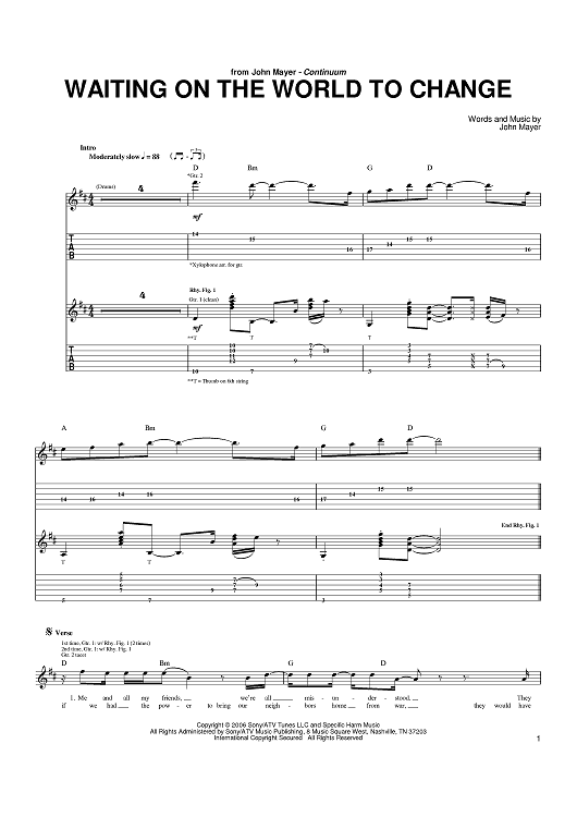 Digital Sheet Music for Waiting On The World To Change by John Mayer scored for Guitar Tab; id:396584