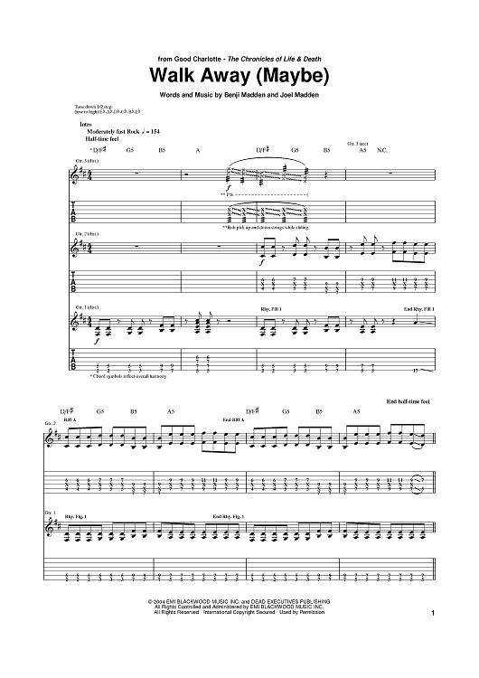 Digital Sheet Music for Walk Away (Maybe) by Benji Madden, Joel Madden, Good Charlotte scored for Guitar Tab; id:383293