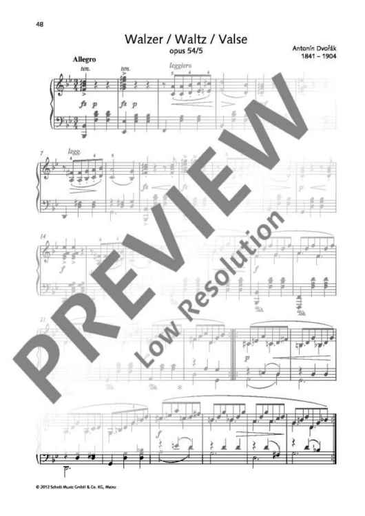 Digital Sheet Music for Waltz by Antonín Dvorák scored for Piano; id:481541
