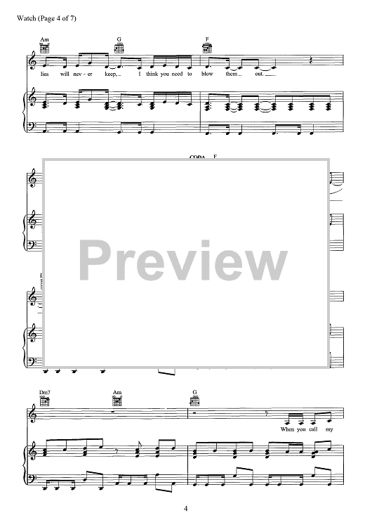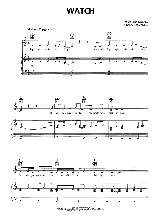 Digital Sheet Music for Watch by Finneas Baird O'Connell, Billie Eilish scored for Piano/Vocal/Chords; id:467685