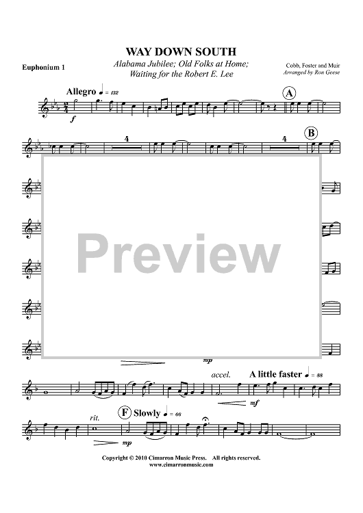 Digital Sheet Music for Way Down South - Euphonium 1 by Various, Ron Geese scored for Tuba Quartet; id:410162