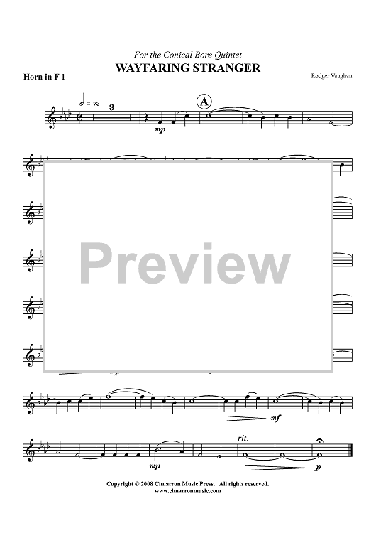 Digital Sheet Music for Wayfaring Stranger - Horn in F 1 by Rodger Vaughan scored for Brass Ensemble; id:417158