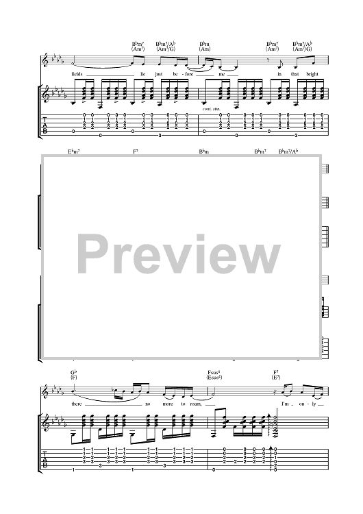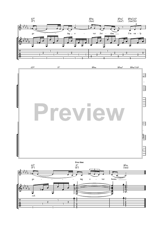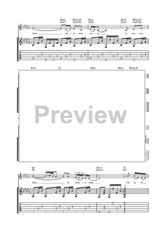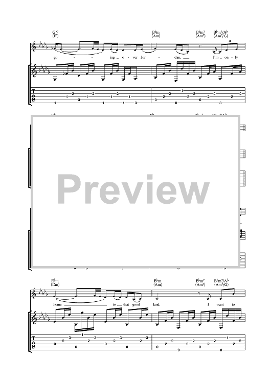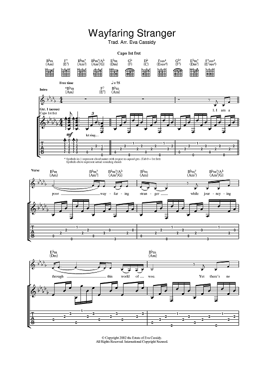 Digital Sheet Music for Wayfaring Stranger by Eva Cassidy scored for Guitar Tab; id:377261