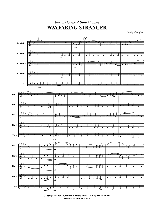 Digital Sheet Music for Wayfaring Stranger - Score by Rodger Vaughan scored for Brass Ensemble; id:417157