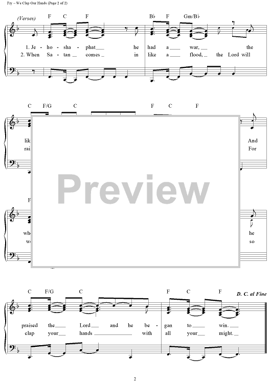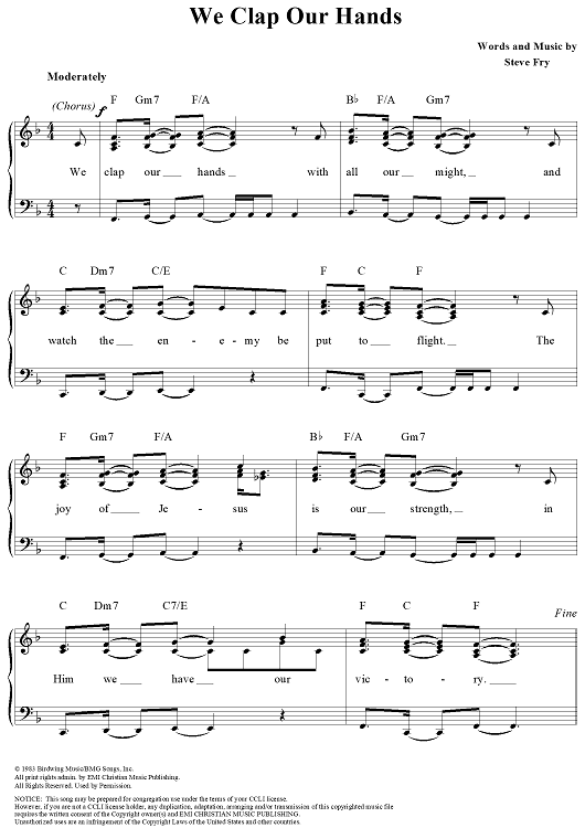 Digital Sheet Music for We Clap Our Hands by Steve Fry scored for Piano/Vocal/Chords; id:113828