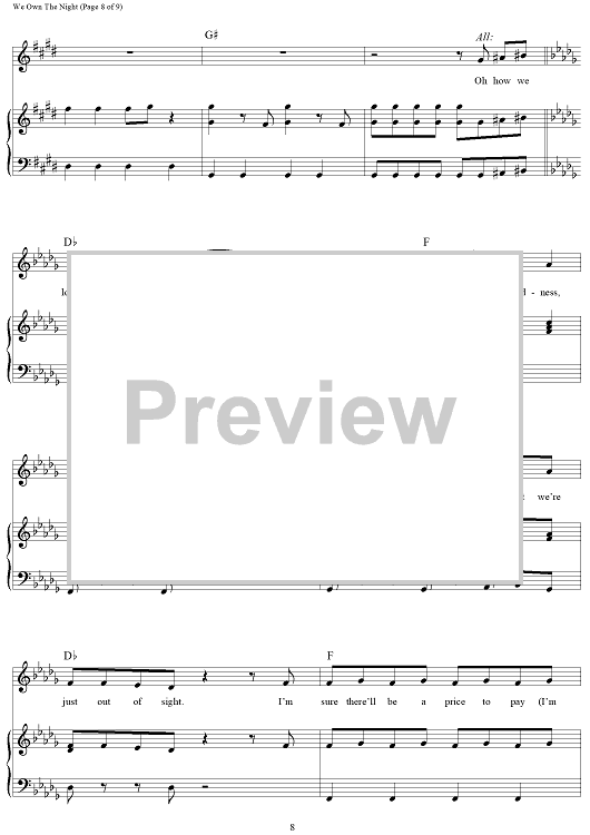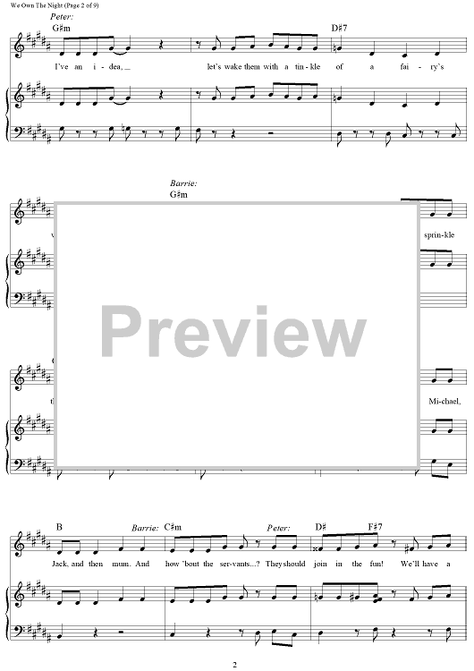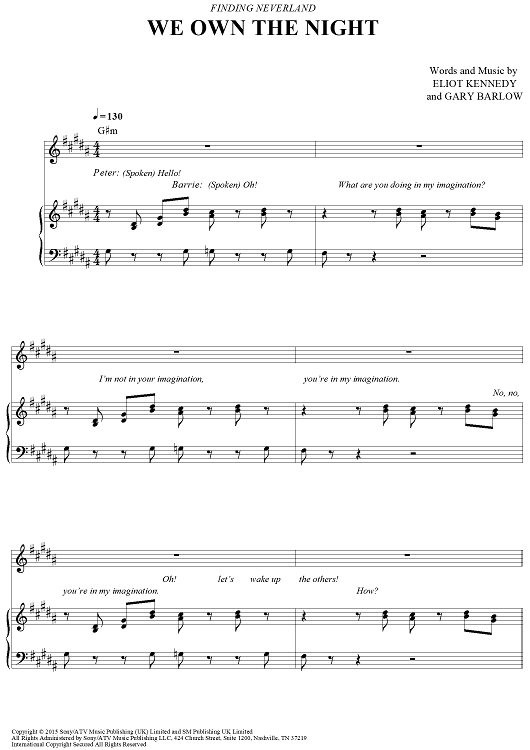 Digital Sheet Music for We Own The Night - from Finding Neverland by Gary Barlow, Eliot Kennedy scored for Piano/Vocal/Chords; id:469001