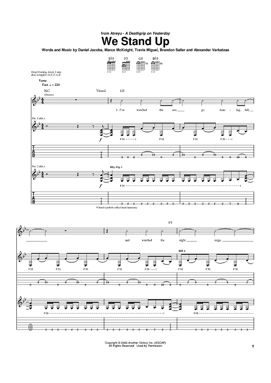 Digital Sheet Music for We Stand Up by Atreyu, Daniel Jacobs, Marco McKnight, Travis Miguel, Brandon Saller, Alexander Varkatzas scored for Guitar Tab; id:394558