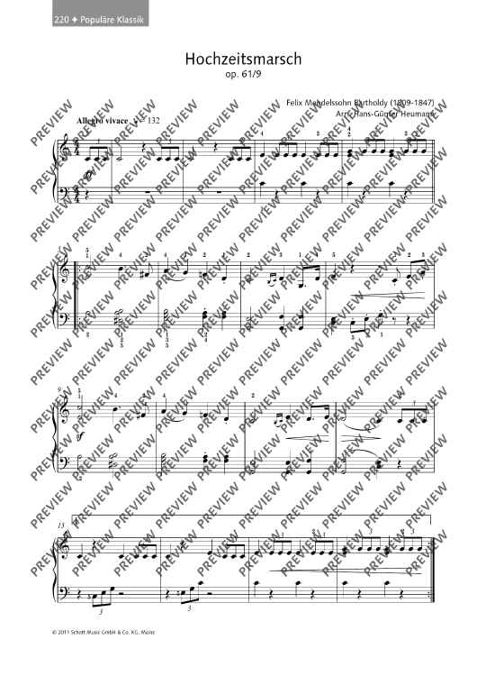 Digital Sheet Music for Wedding March by Felix Mendelssohn Bartholdy, Hans-Guenter Heumann scored for Piano; id:483303