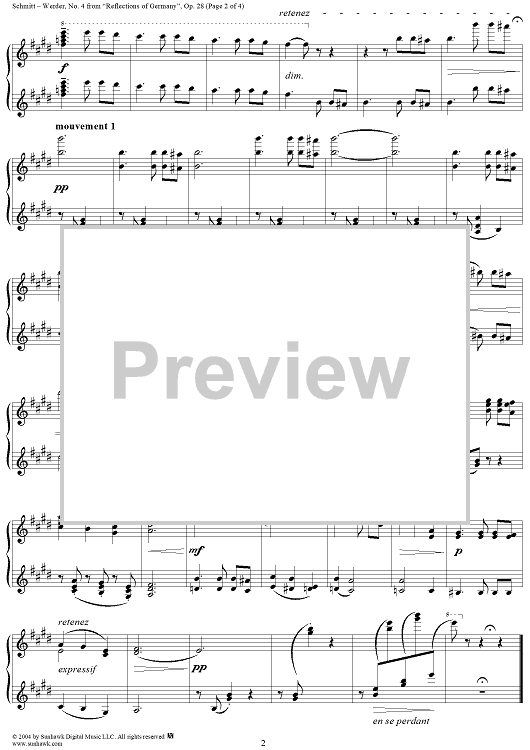 Digital Sheet Music for Werder, from "Reflections of Germany", Op. 28 by Florent Schmitt scored for 1 Piano, 4 Hands; id:295996