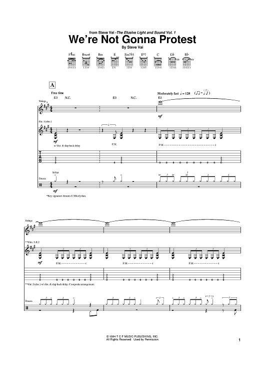 Digital Sheet Music for We're Not Gonna Protest by Steve Vai scored for Guitar Tab; id:385017