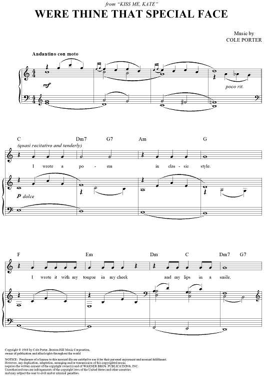 "Were Thine That Special Face" Sheet Music by Cole Porter