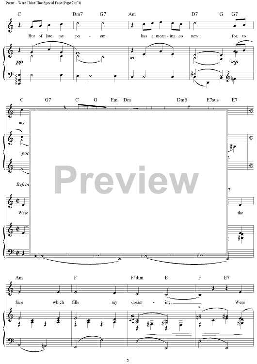 Digital Sheet Music for Were Thine That Special Face by Cole Porter scored for Piano/Vocal/Chords; id:313927