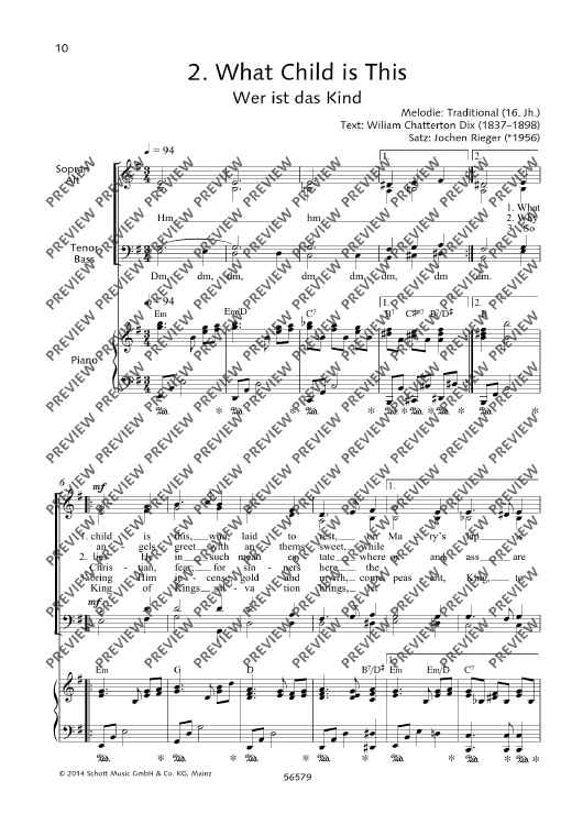 Digital Sheet Music for What Child Is This by Jochen Rieger, Traditionell scored for Mixed Choir (satb) And Piano; id:485855