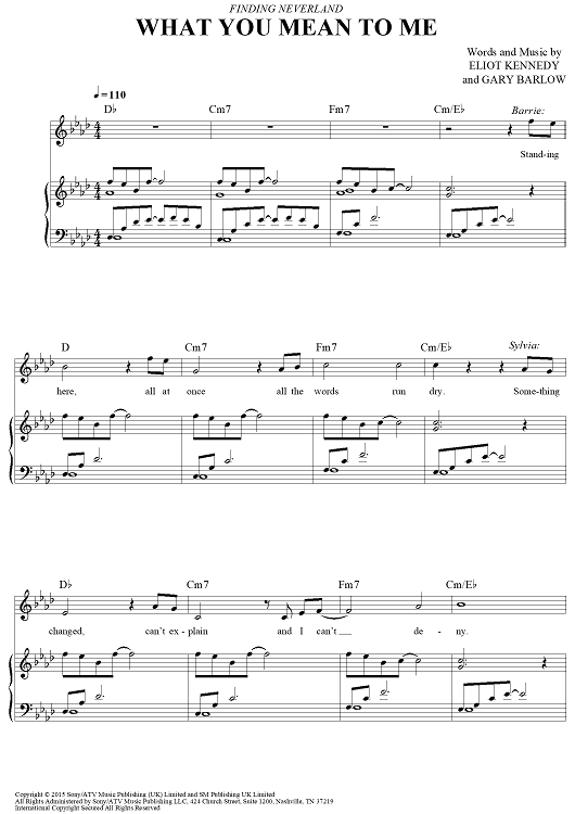 Digital Sheet Music for What You Mean To Me - from Finding Neverland by Gary Barlow, Eliot Kennedy scored for Piano/Vocal/Chords; id:469000