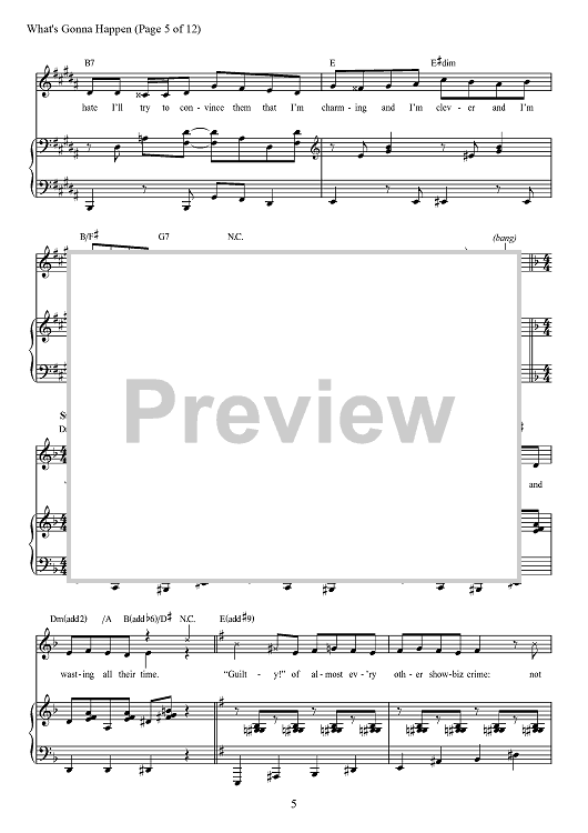 Digital Sheet Music for What's Gonna Happen by David Yazbek scored for Piano/Vocal/Chords; id:467893