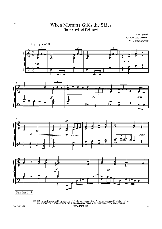 Digital Sheet Music for When Morning Gilds the Skies (In the style of Debussy) by Joseph Barnby, Lani Smith scored for Piano Solo; id:433588