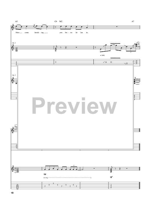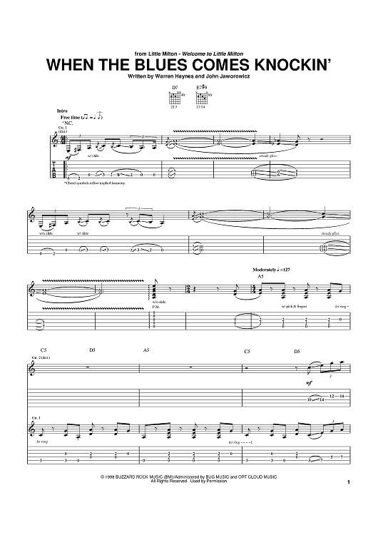 Digital Sheet Music for When The Blues Comes Knockin' by Warren Haynes, John Jaworowicz scored for Guitar Tab; id:371543