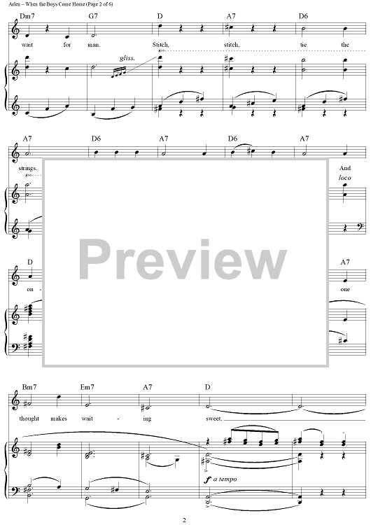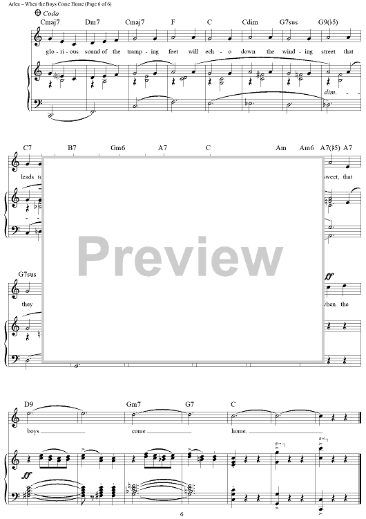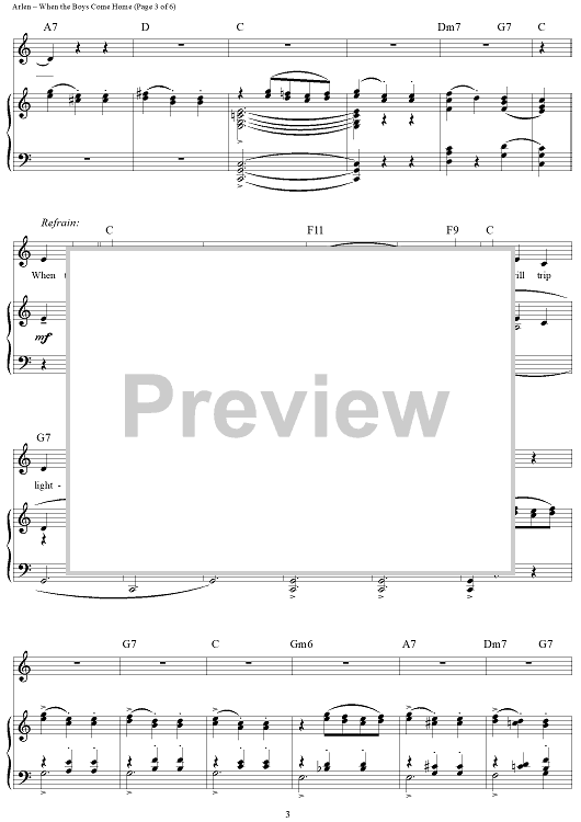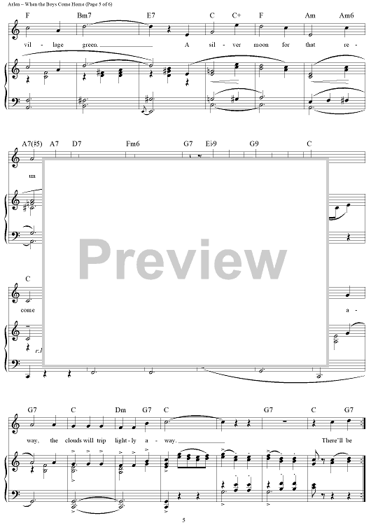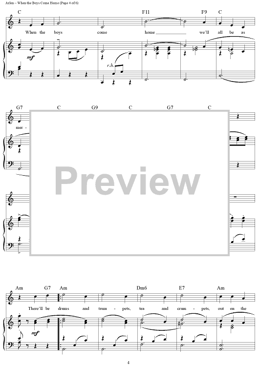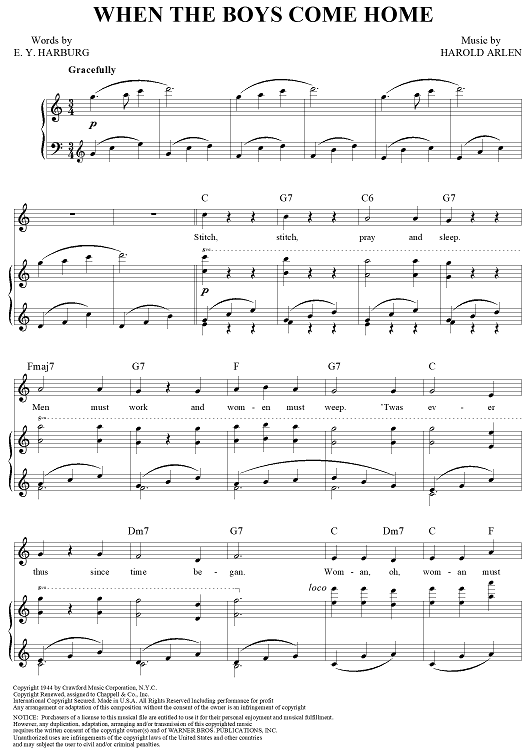 Digital Sheet Music for When the Boys Come Home by Harold Arlen, E.Y. "Yip" Harburg scored for Piano/Vocal/Chords; id:355922