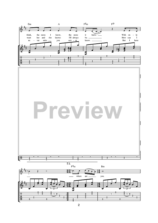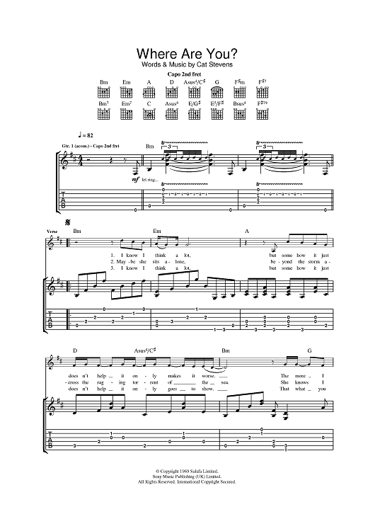 Digital Sheet Music for Where Are You? by Cat Stevens scored for Guitar Tab; id:378152
