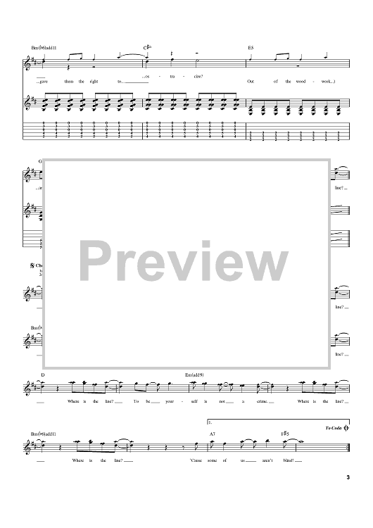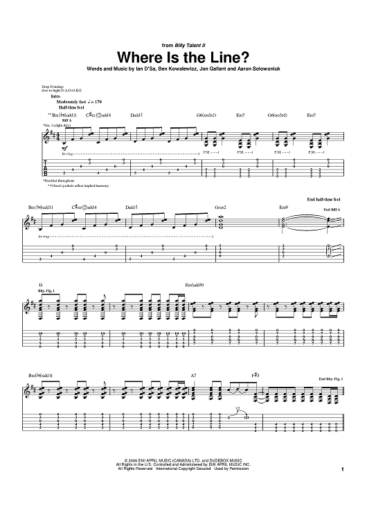 Digital Sheet Music for Where Is The Line? by Billy Talent, Ian D'Sa, Jon Gallant, Ben Kowalewicz, Aaron Solowoniuk scored for Guitar Tab; id:396570