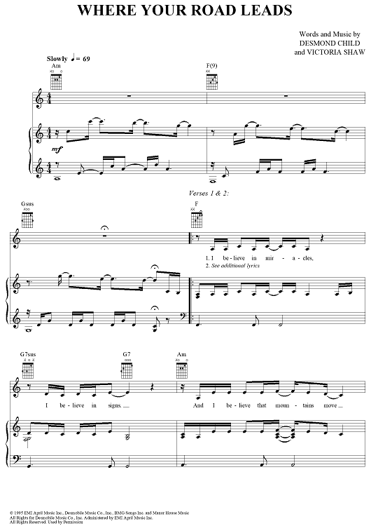 Digital Sheet Music for Where Your Road Leads by Victoria Shaw, Desmond Child scored for Piano/Vocal/Chords; id:286846