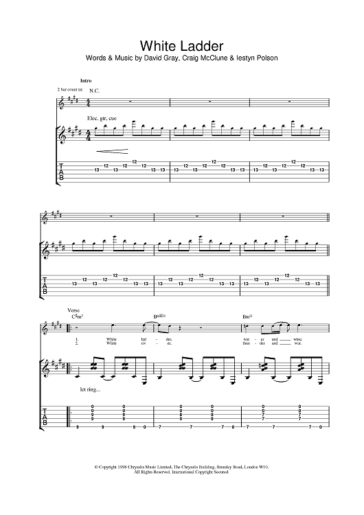 Digital Sheet Music for White Ladder by David Gray scored for Guitar Tab; id:377077