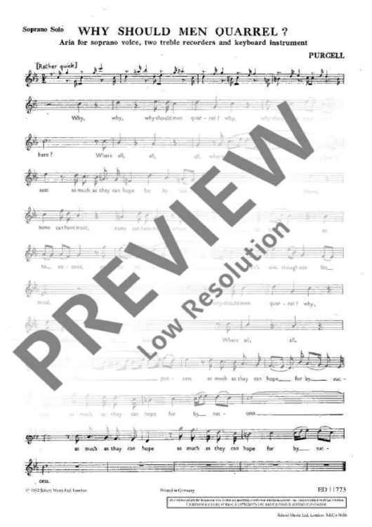 "Why Should Men Quarrel?" Sheet Music by Henry Purcell