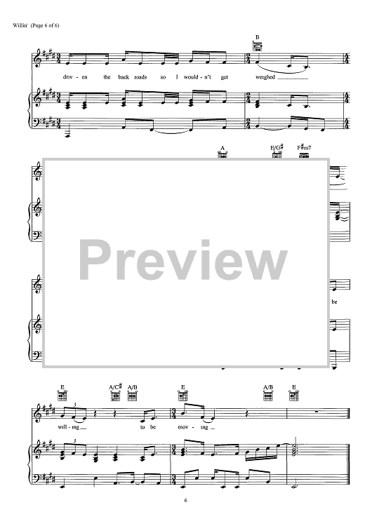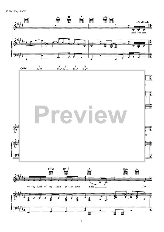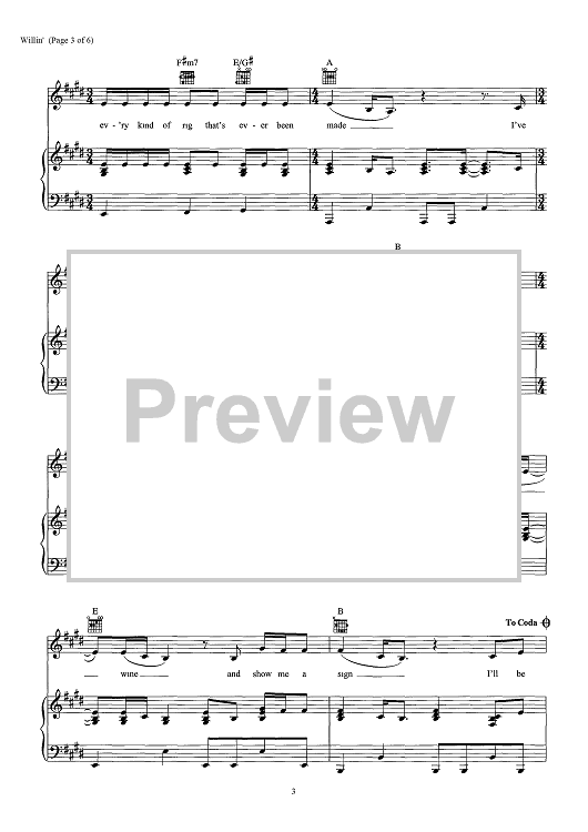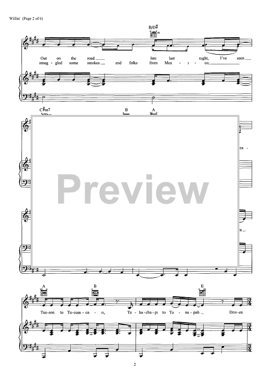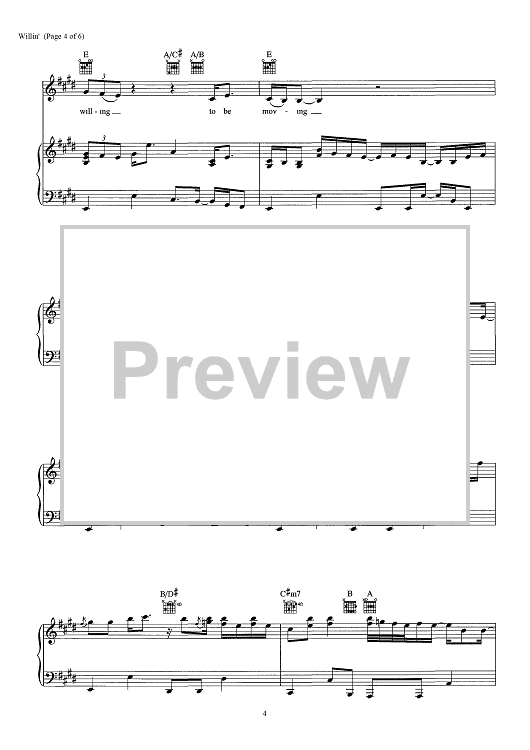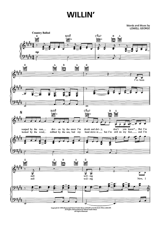Digital Sheet Music for Willin' - from "This Is Us" by Lowell George scored for Piano/Vocal/Chords; id:466732